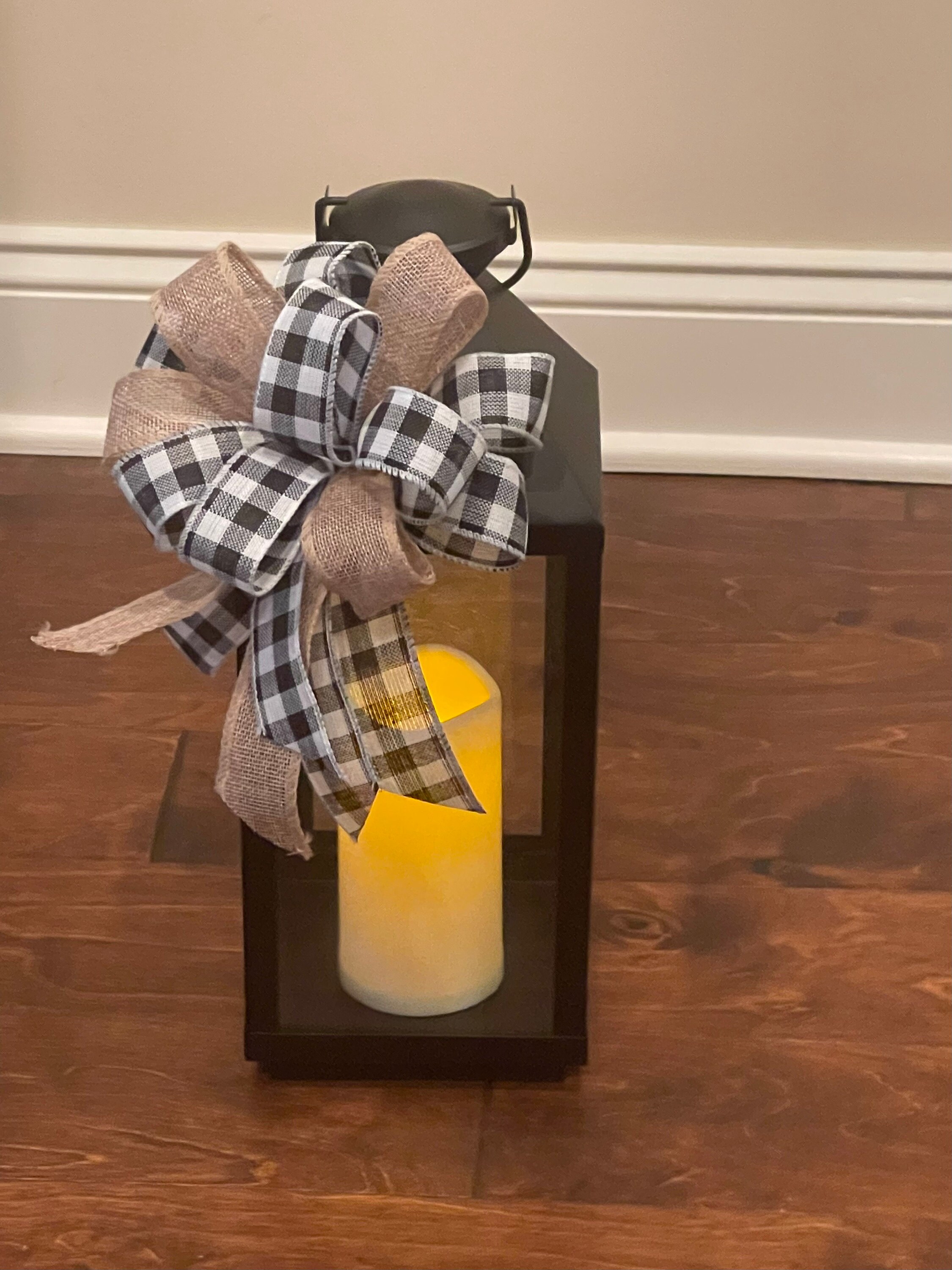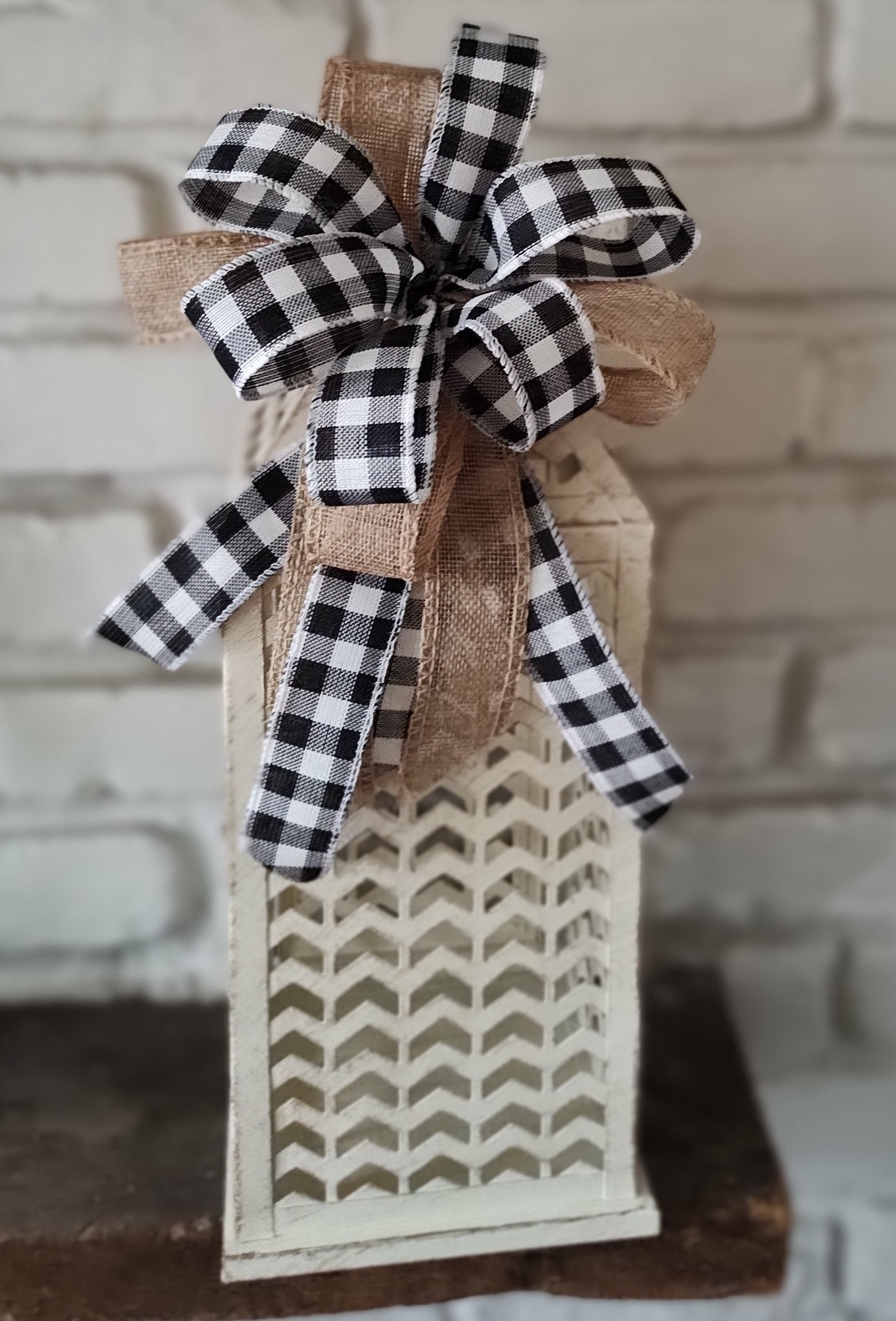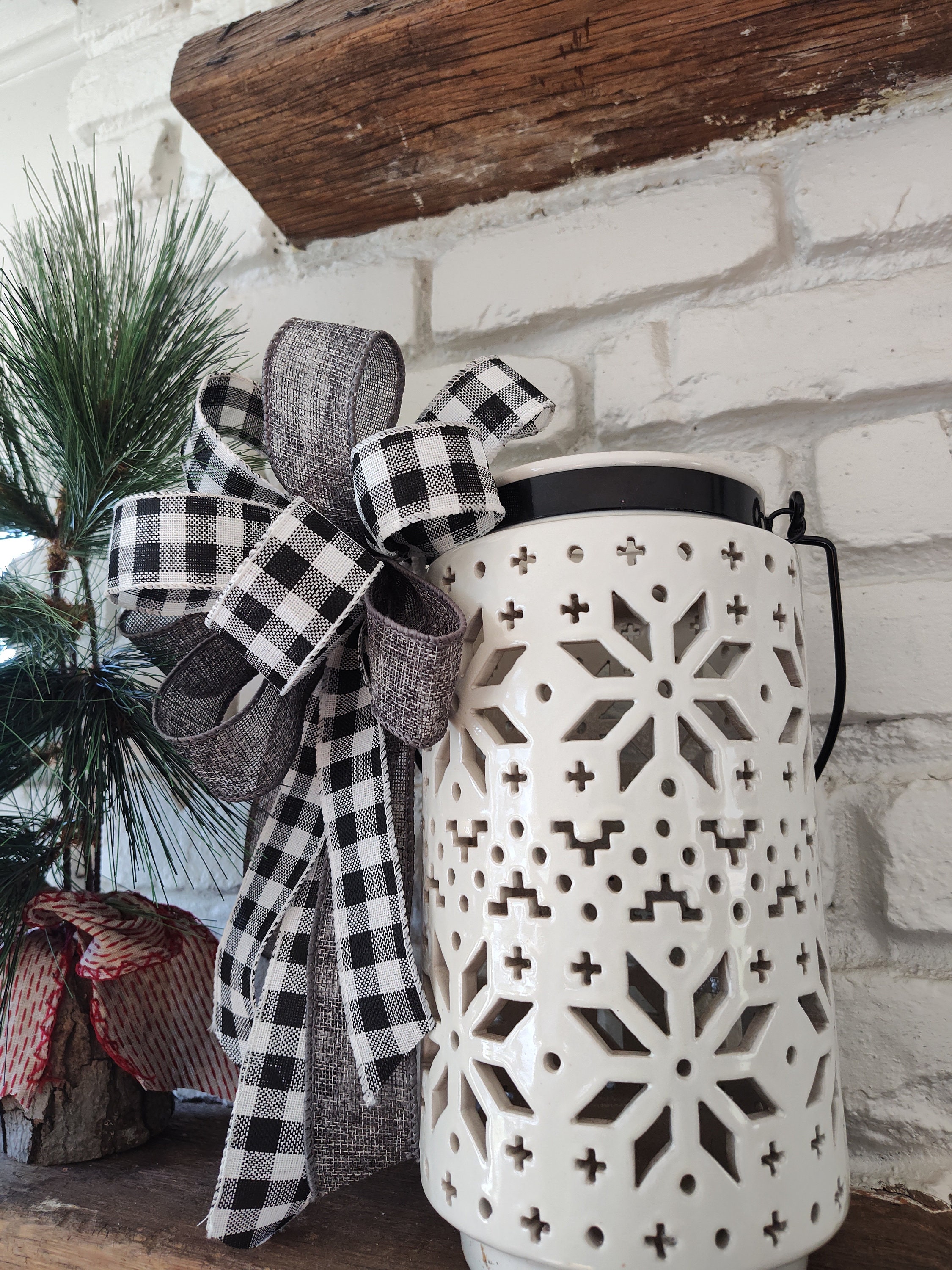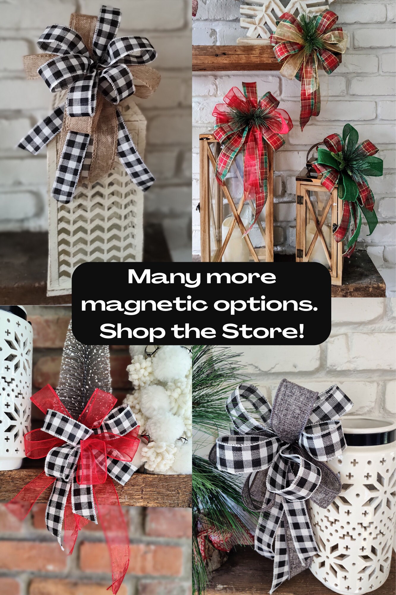 Magnets will be attached to base of bow on the plaid ribbon.