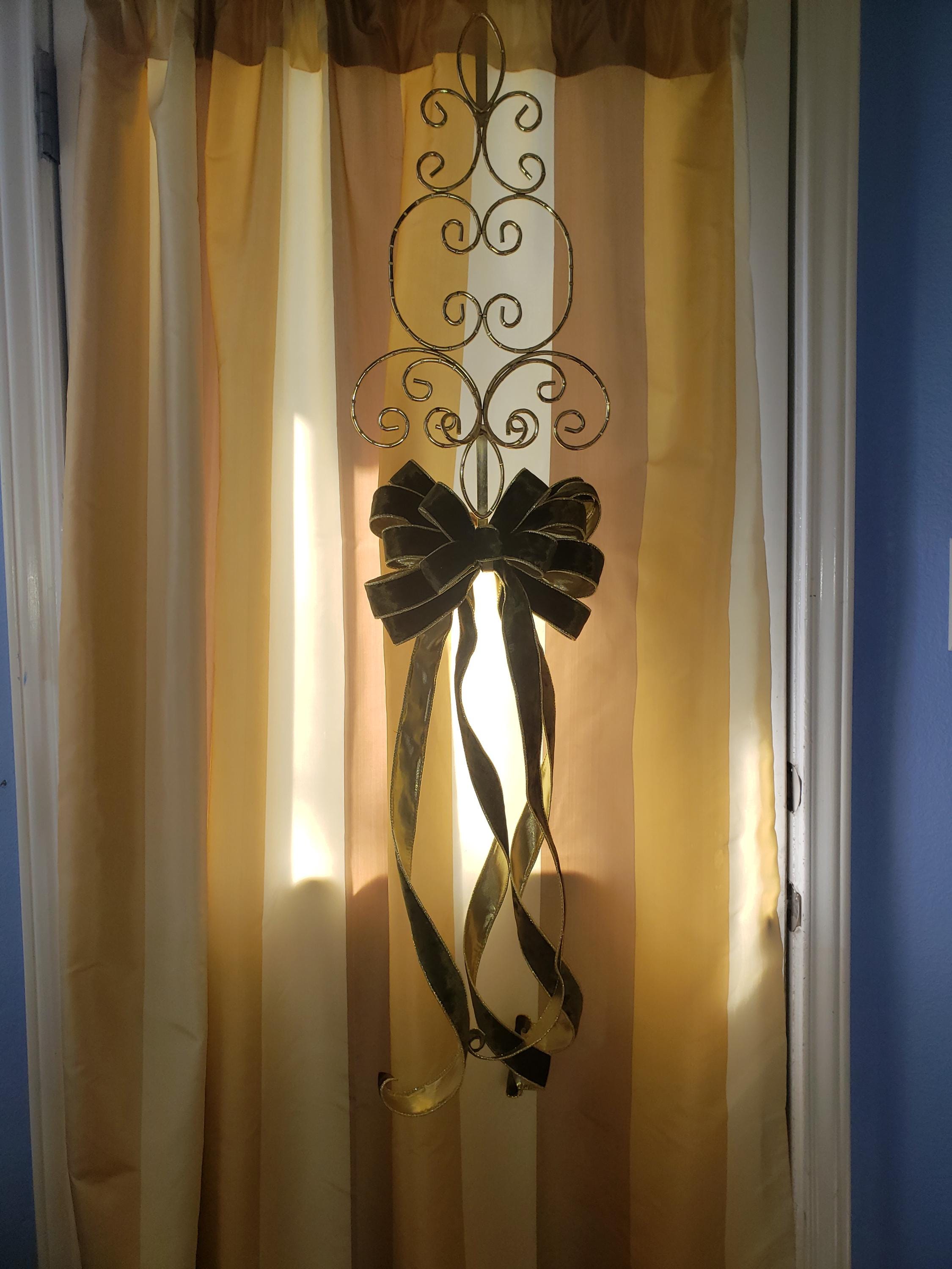 This bow is amazing and I felt as though this was received as a corsage for prom! What a great presentation!!! I am thankful for the time the merchant spoke with me as I shared my plans for an art deco styled room, and she went right to work with a suggestion to help. I am delighted with the bow and the time she spent with me to make it possible. It is perfect for a door which needed that little *something*