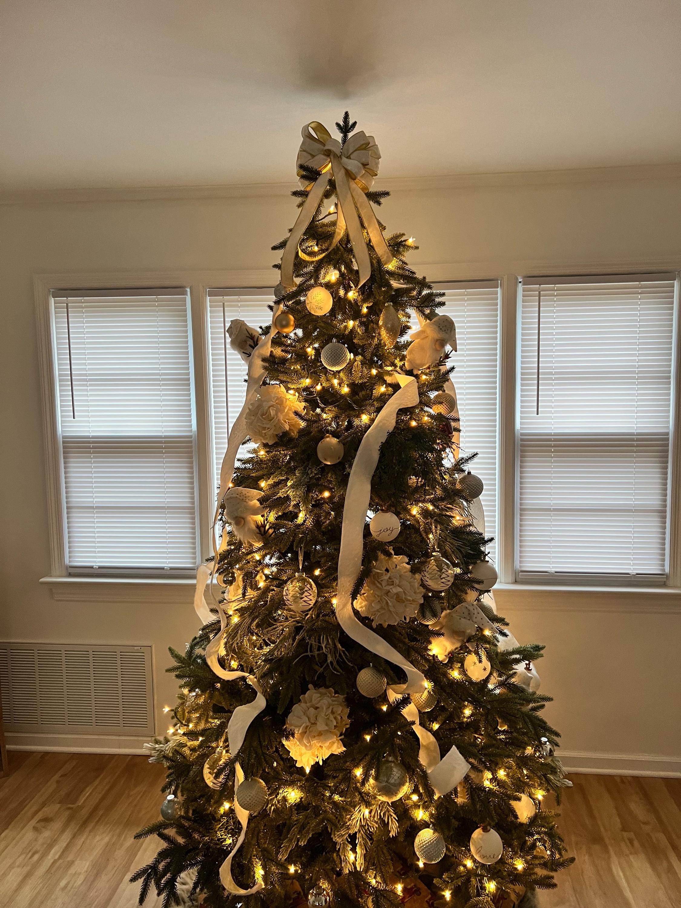 This gorgeous velvet is so soft and hand-tied with 1.5in wide wired, a medium-to-heavy bodied ribbon, lined with soft metallic fabric that glows under the lights. Each bow is thoughtfully shipped in a storage box, and secured with a zip tie and chenille stem for easy, scratch-free attachment. Select the length of tails from the drop-down menu, 12in tails for a wreath, mantle, lanterns, or smaller items, 24in (as seen here) for small tree toppers, larger wreaths and lanterns over 24in, and a super long 36in which is a tree topper length for skinny trees up to 9ft, and standard width/traditional trees up to 8ft.