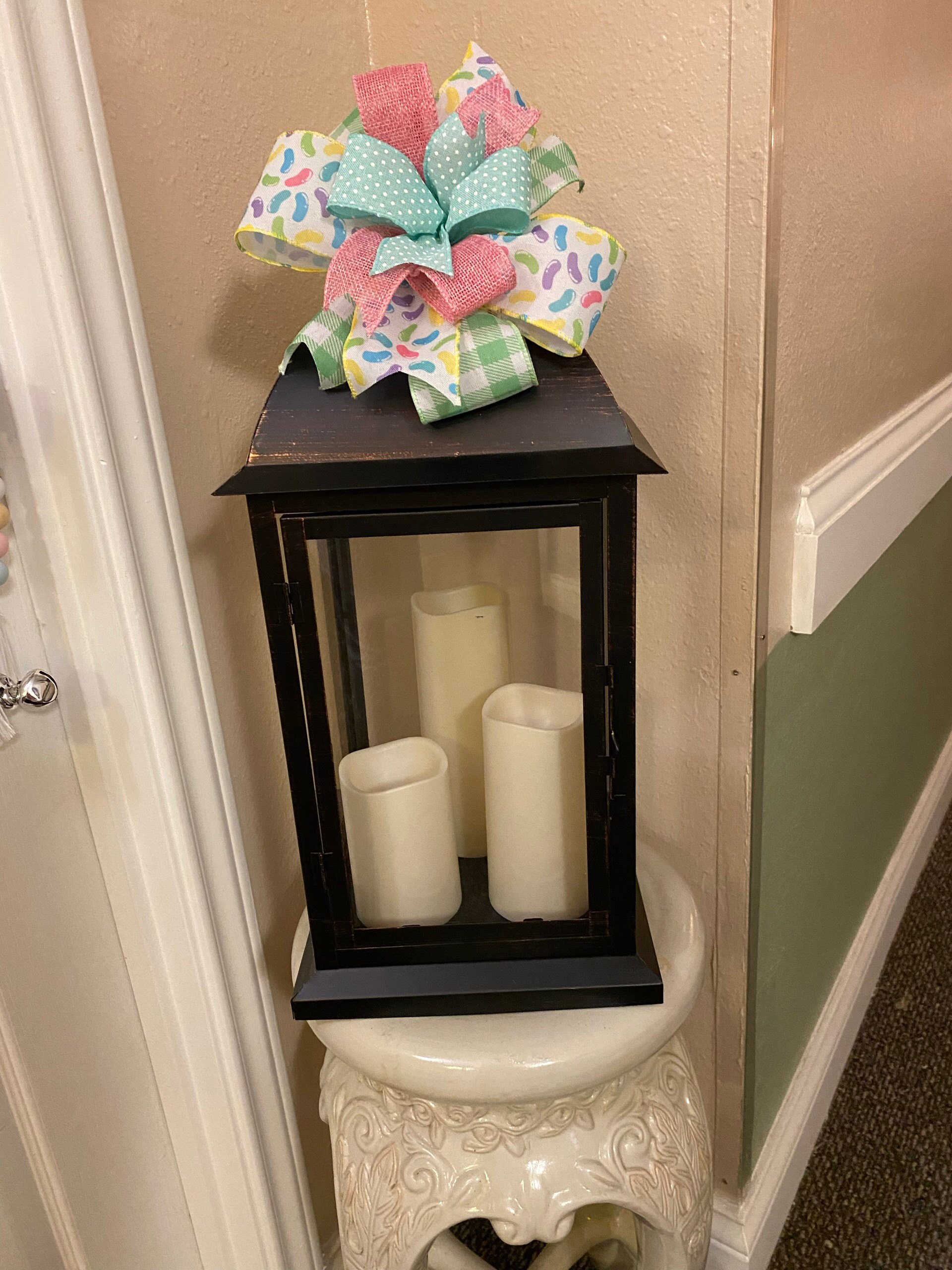 8x12in Round Bow, made with 2.5in and 1.5in wired ribbons. This size is ideal for wreaths 12in-17in. Easter baskets, and lanterns 12in and up. Your bows come with chenille pipe-cleaners for scratch-free attachment and are thoughtfully shipped in a storage box. Shipping is included. This bow is recommended for indoor/covered areas.