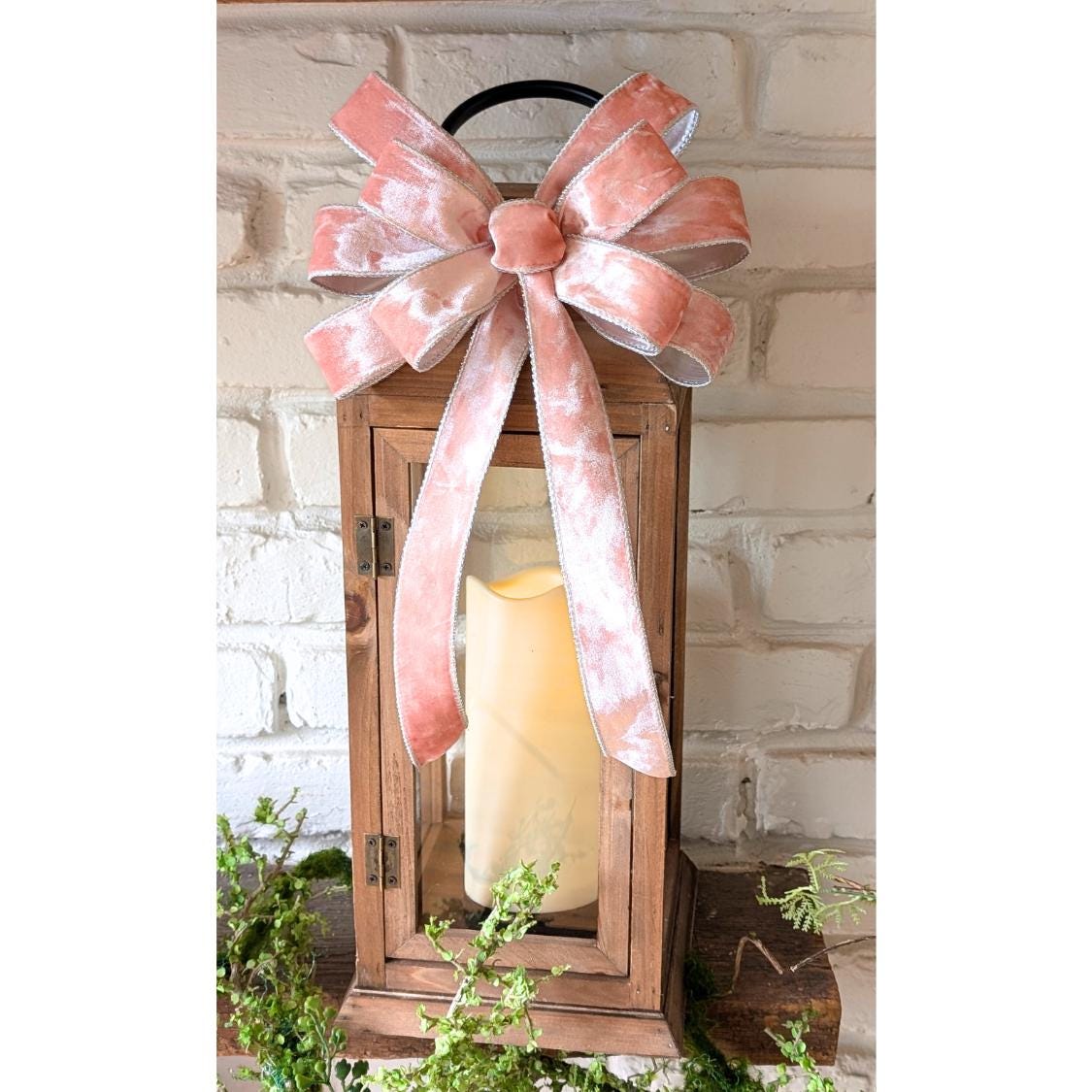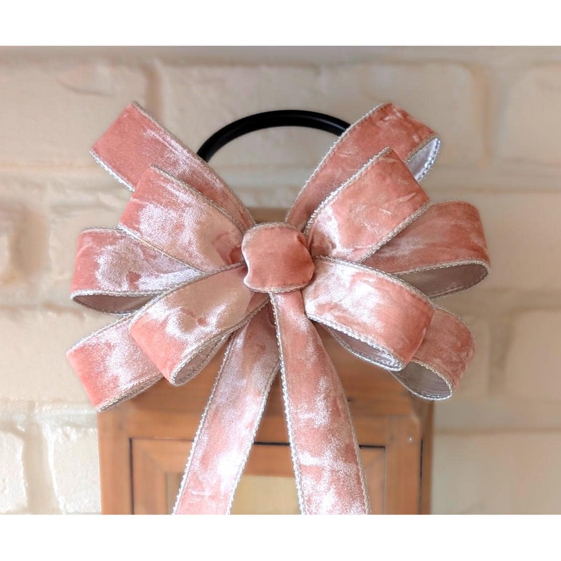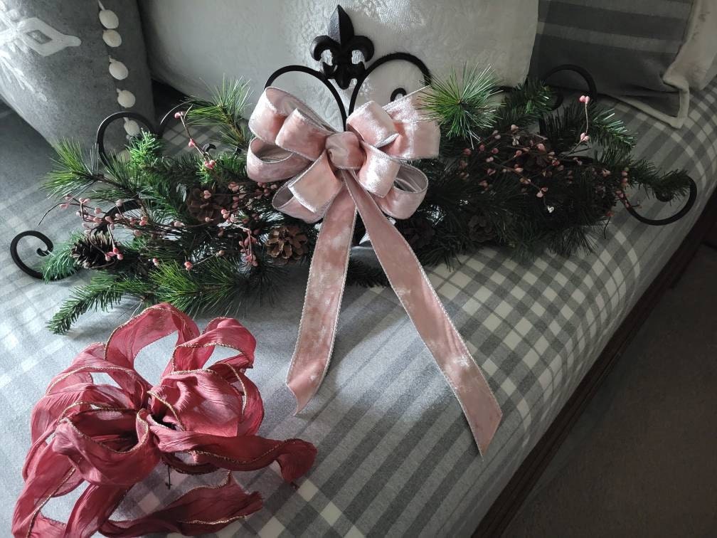 -Each bow would look amazing on a Small/Medium Wreath (14-18in), 12-24in high lantern...Perfect as a set for railings, mantles, hanging from lighting, or for a wedding basket, bouquet ribbons, or other special events. Each measures approx: 8.5-9in wide, longest tails are approx 12in in length.