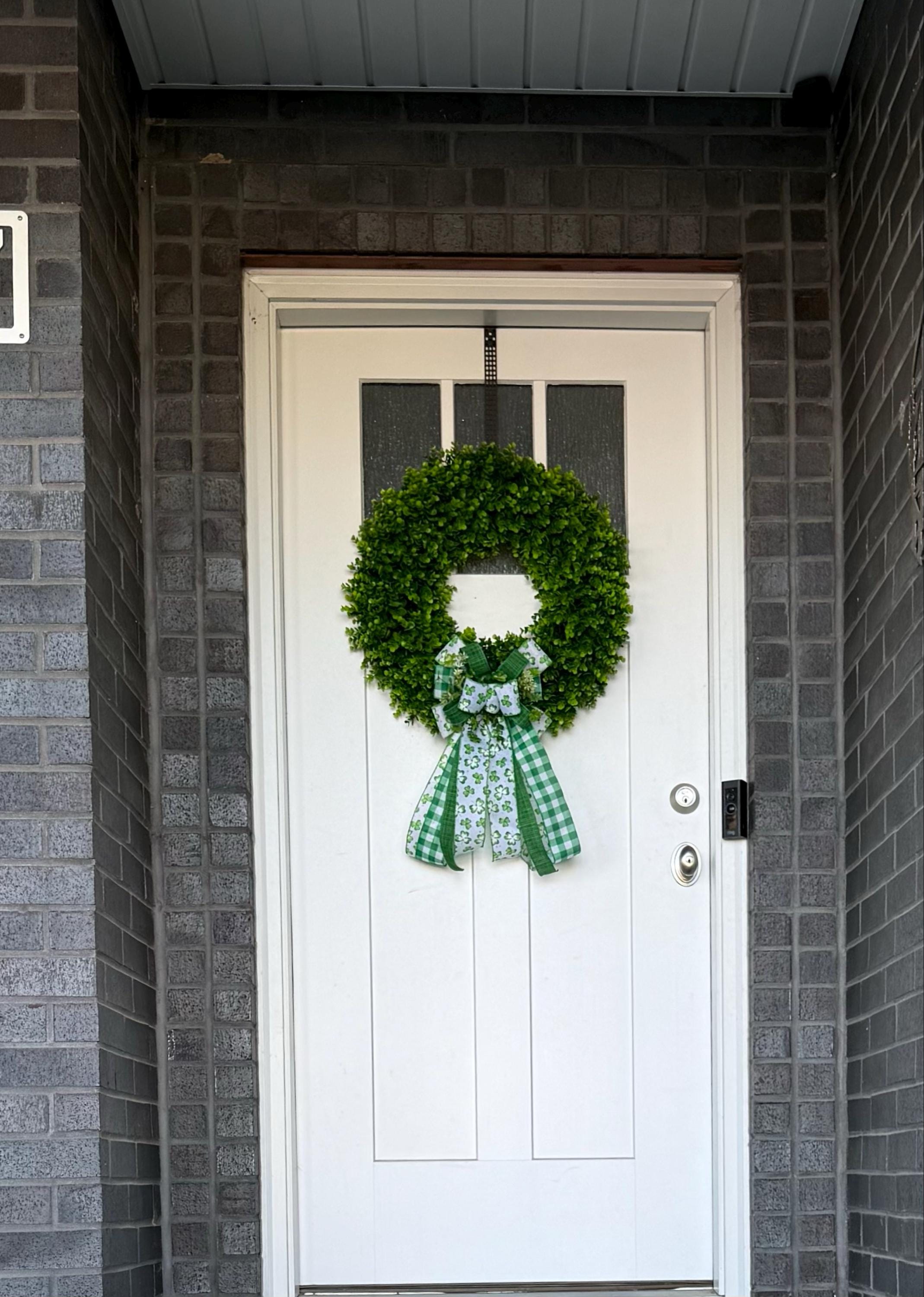 Beautiful wired ribbon in a hand-tied wreath bow shipped thoughtfully, arrives gorgeous and ready to use with clover sprays throughout.