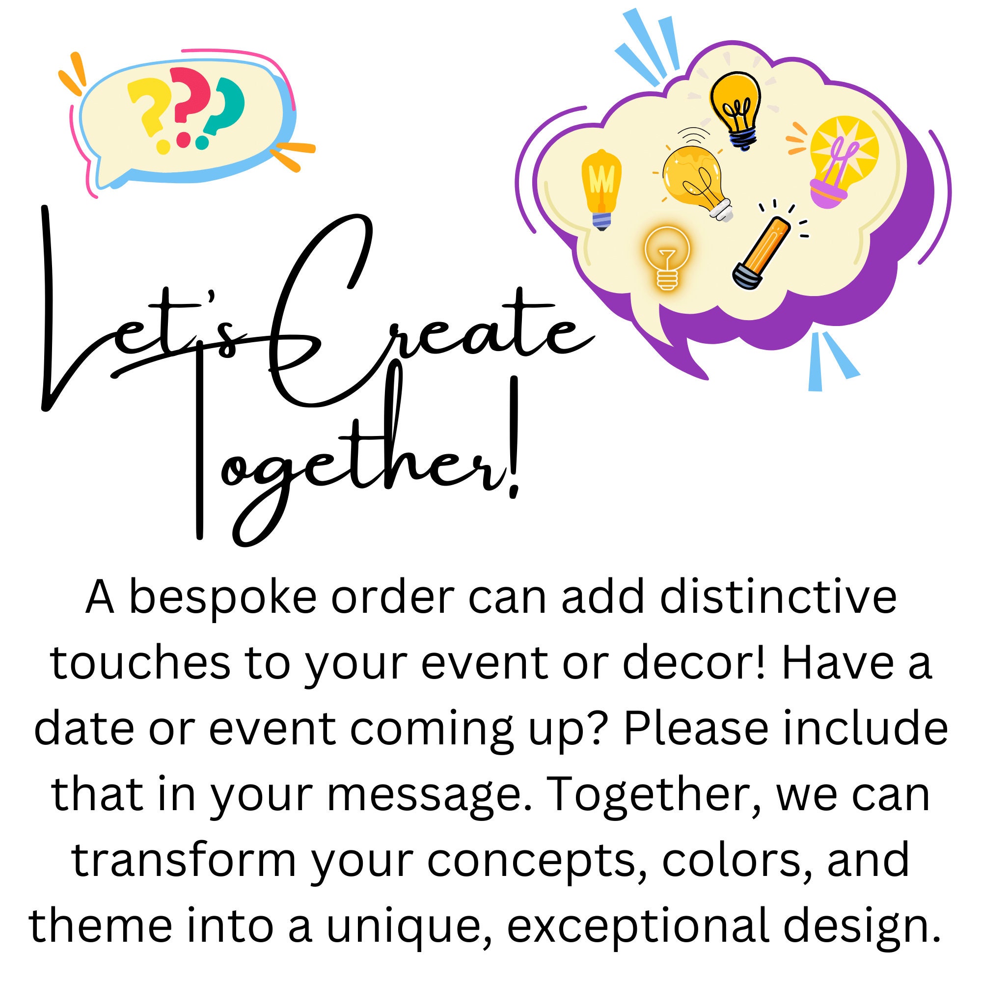We love making custom orders! If you love this ribbon but need a different size/style, or have an idea for another design I'd love to hear from you. We can collaborate and make your unique vision a reality, your special party or event something to remember. Send me your ideas, approx size and number needed, and I'll get back to you with special volume pricing and options.