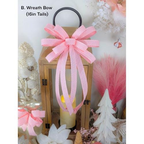 Gorgeous 1-inch wired Pink Glitter Print (white geometric/silver glitter has minimal flaking) is the ideal enhancement for a soft and bright pastel palette, and beautifully complements various styles. This timeless fabric features a sturdy wire that ensures it remains in place when styled. The accent bows serve as a delightful addition for any tree, garland, railing, swag, or decor! They are an excellent way to create harmony across multiple areas or rooms, resulting in a cohesive aesthetic.