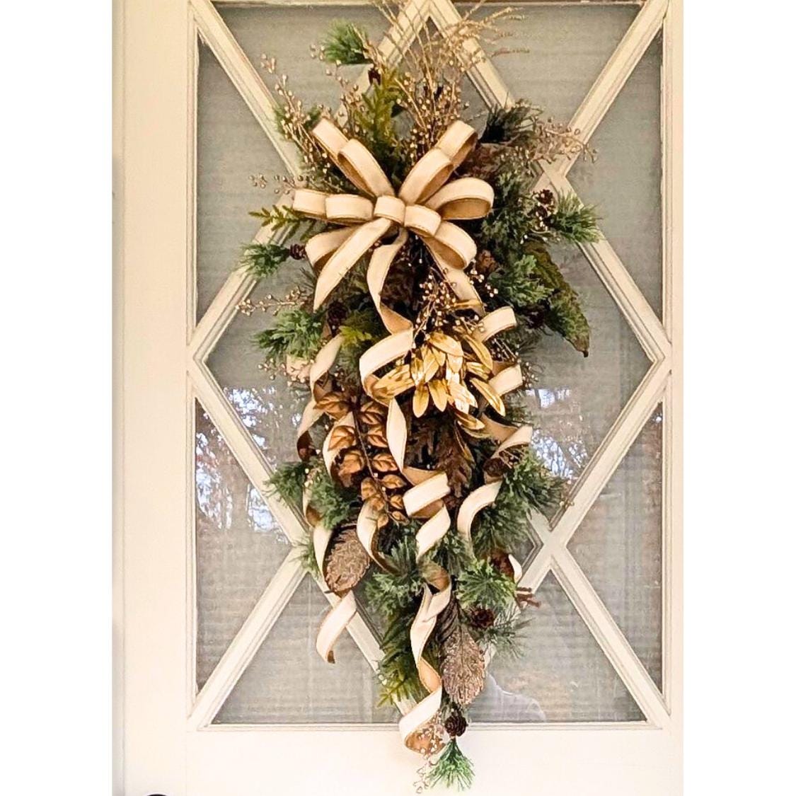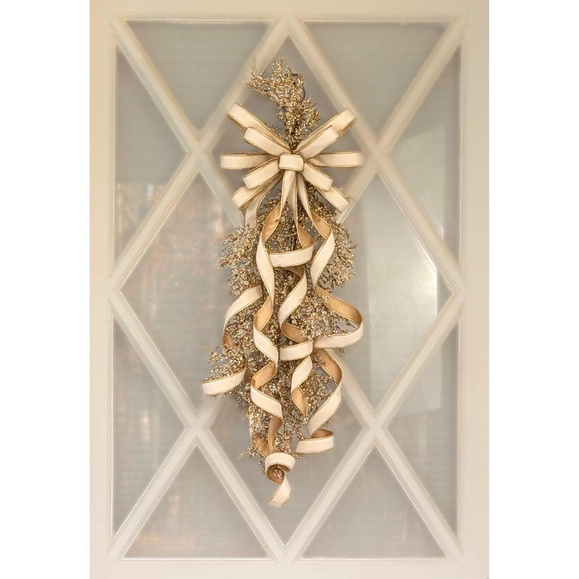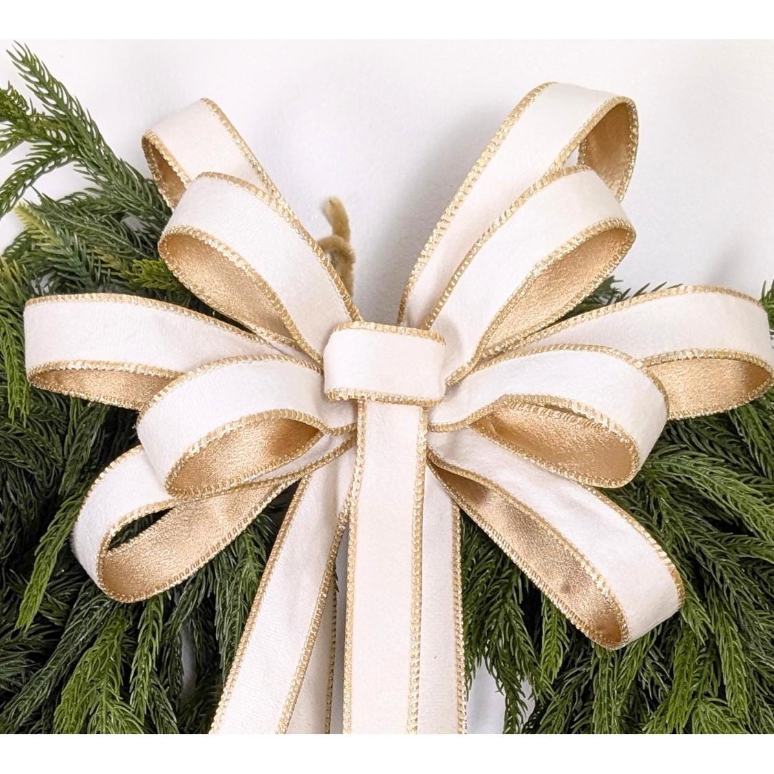 WHILE SUPPLIES LAST! Crafted from 1-inch wired, full-bodied ribbons that maintain their shape beautifully. Shipped thoughtfully, in a storage box, this beautiful, chic addition will keep pretty and packaged to enjoy year after year!