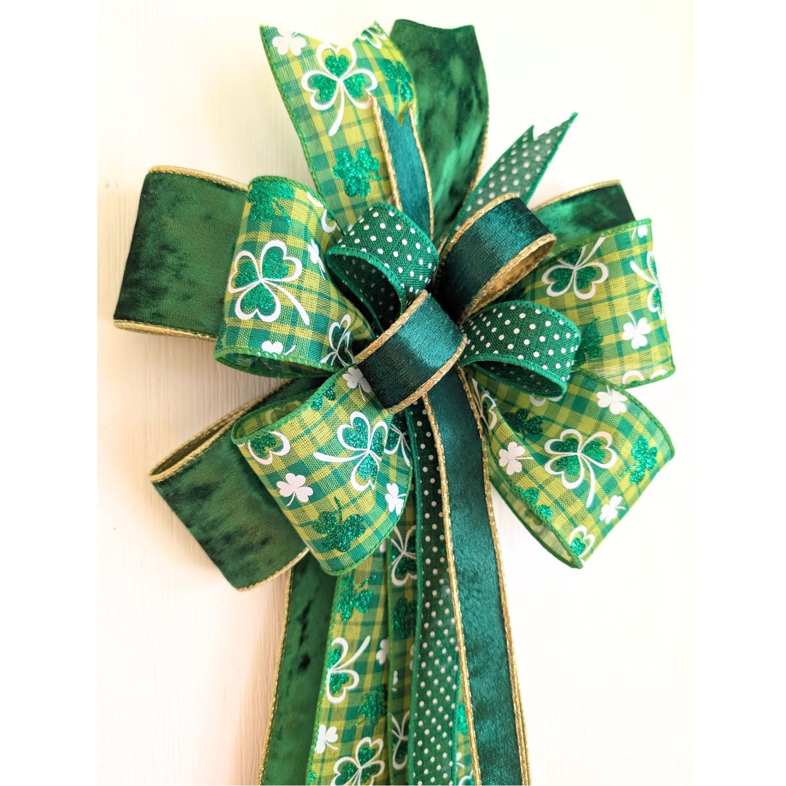 This bow is made with 4 different ribbons.