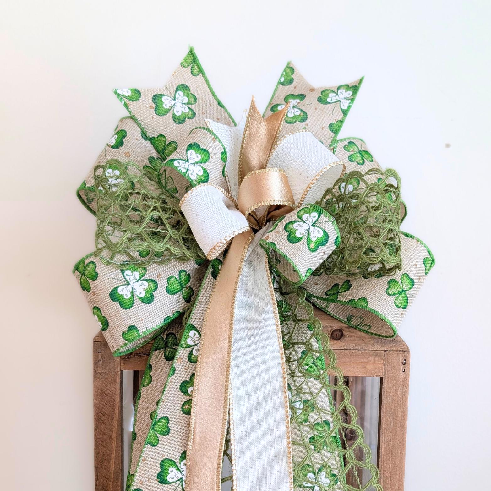 This fun multi-ribbon/multi-print wired wreath bow is also a great size for front door decor and lanterns.