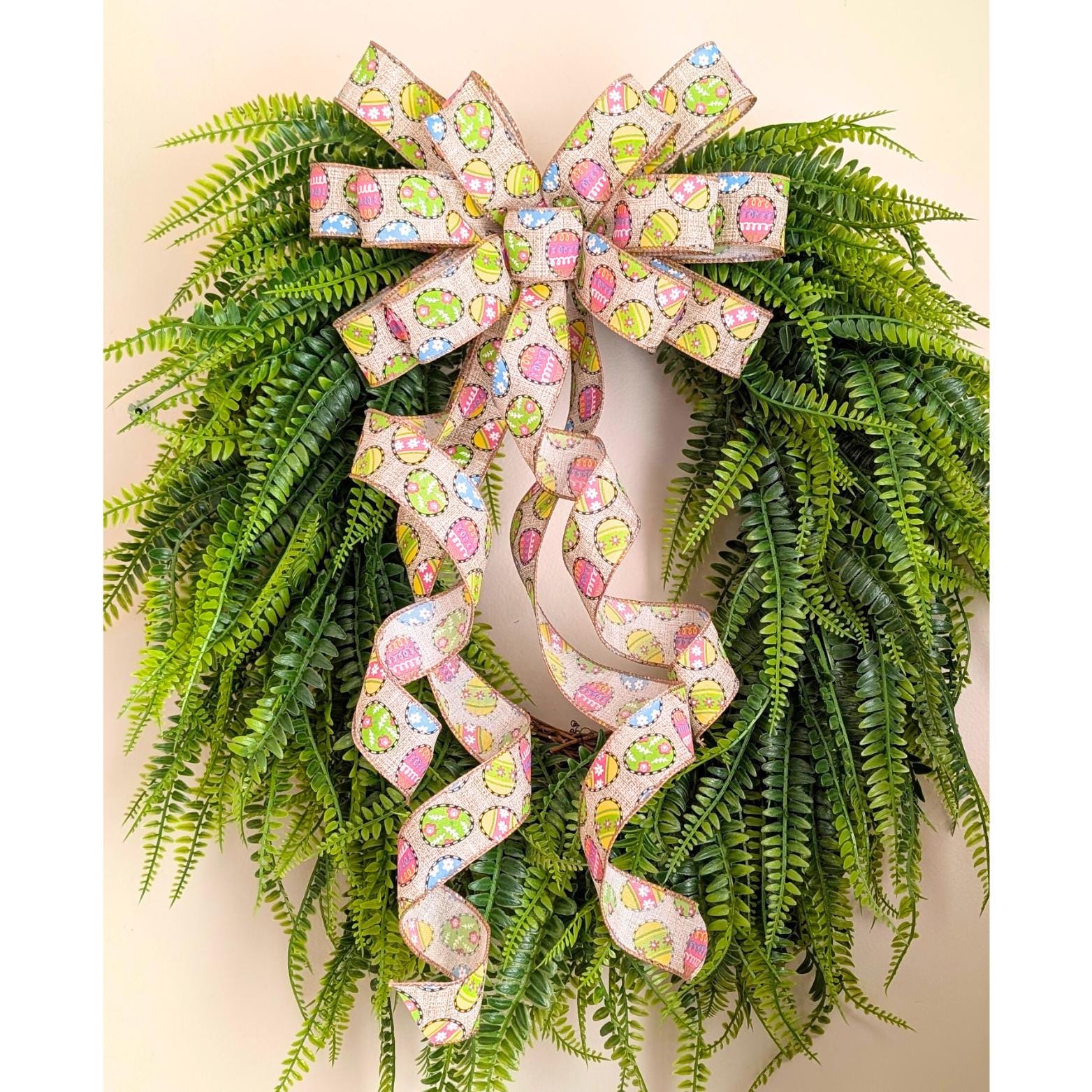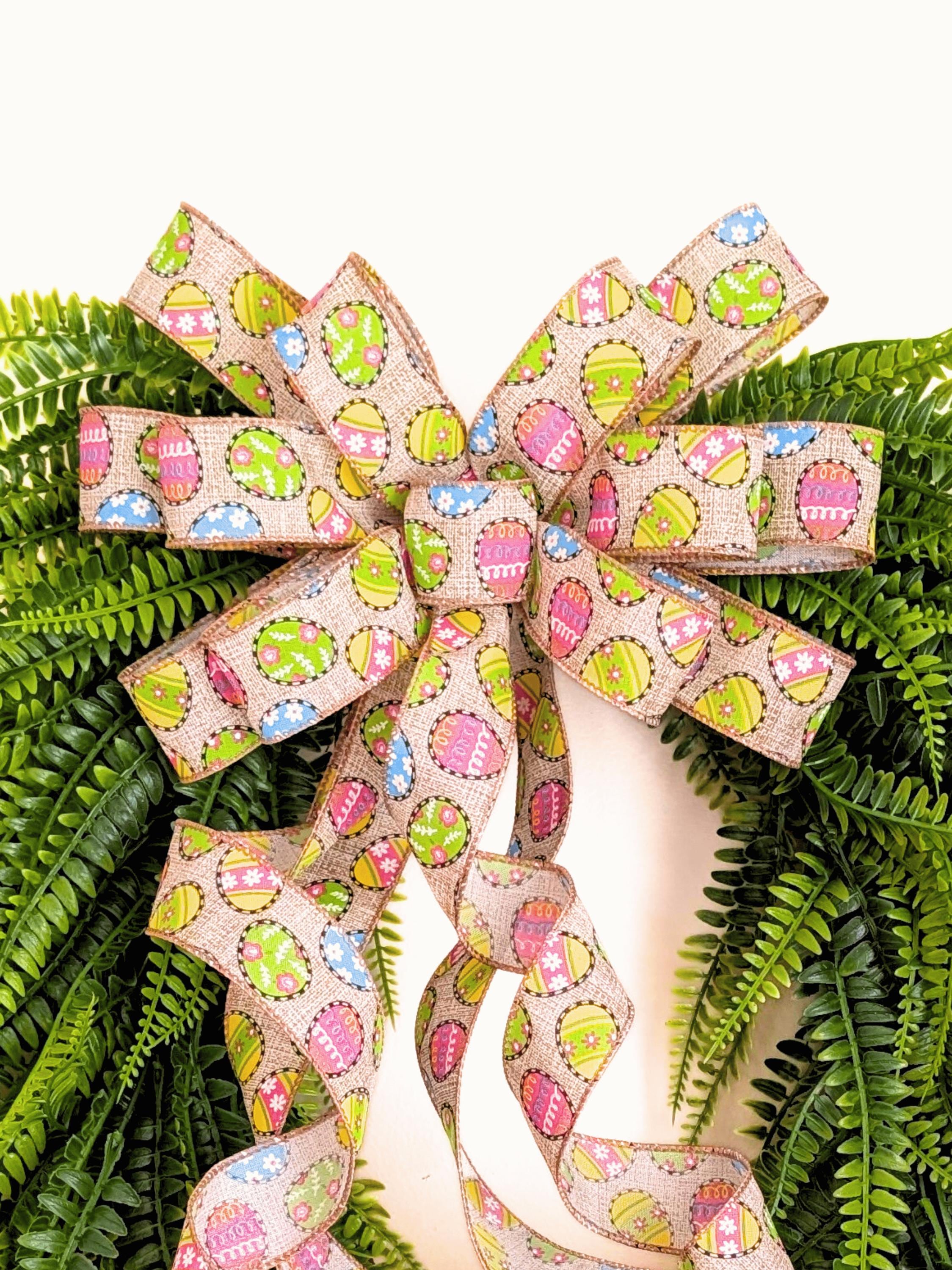 Delightful Easter Wreath Bow in pretty spring/summer colors. A fun and festive addition to your Easter Decorations and Spring Wreath.