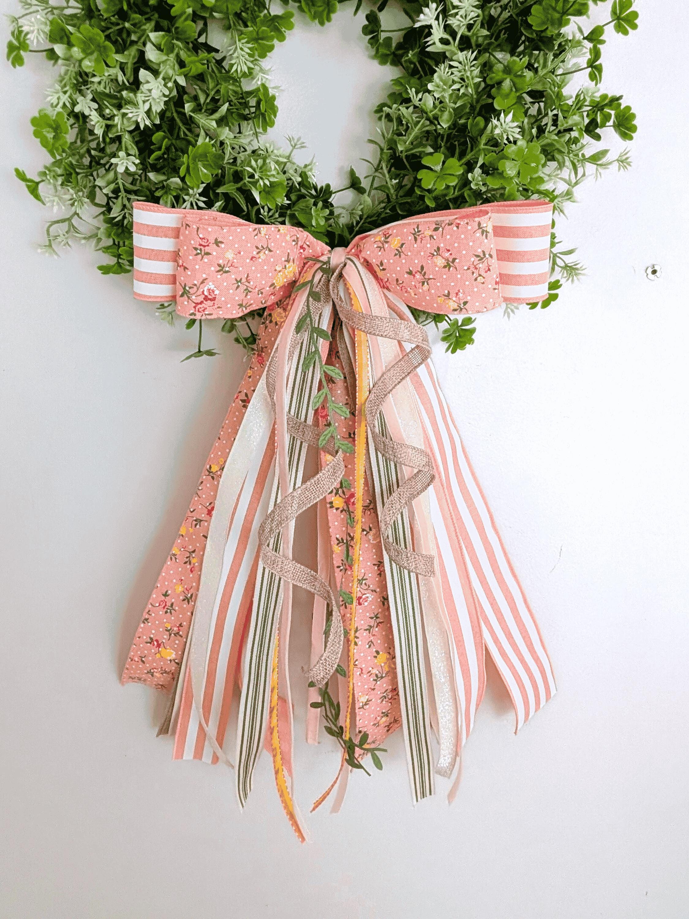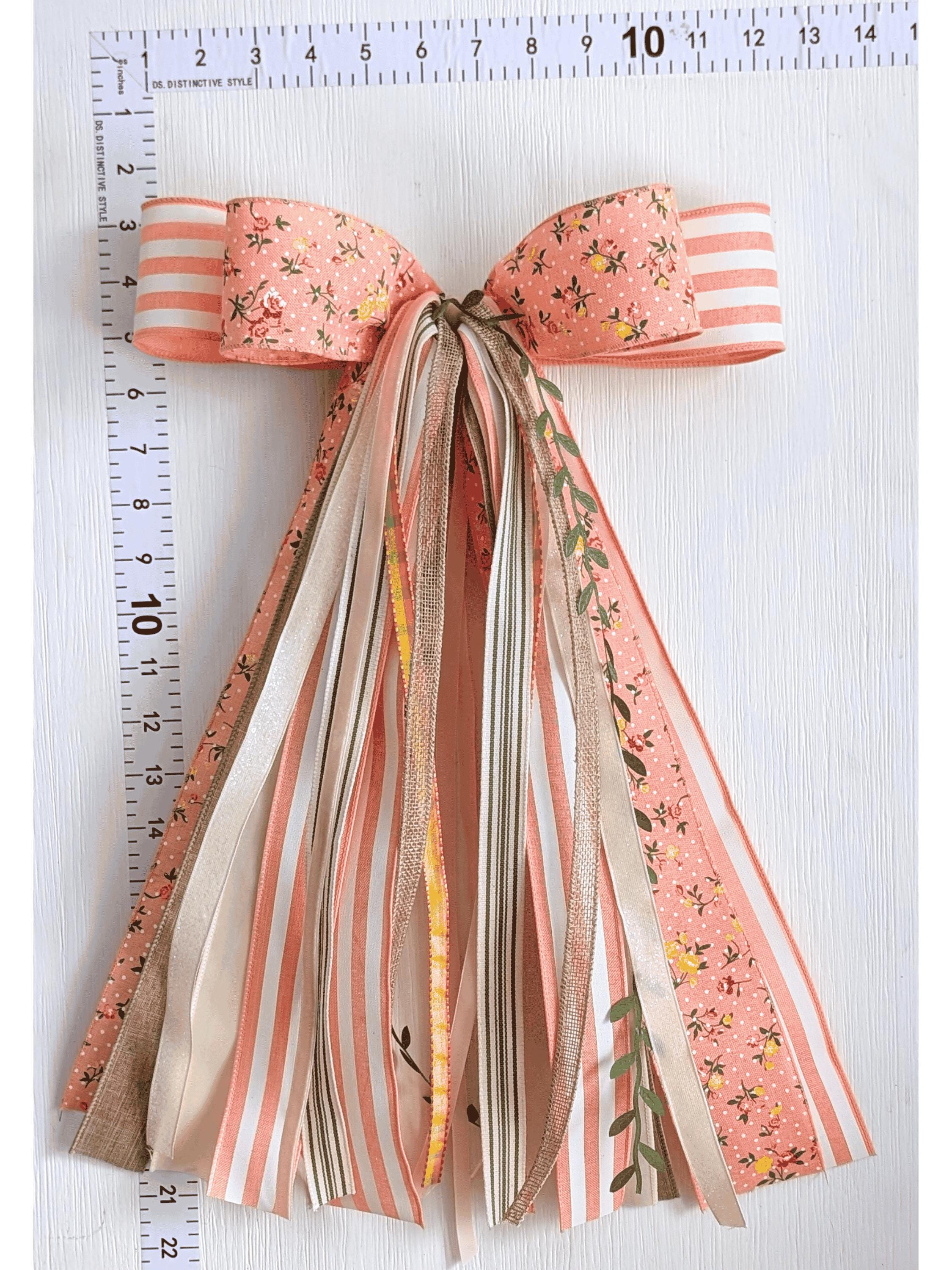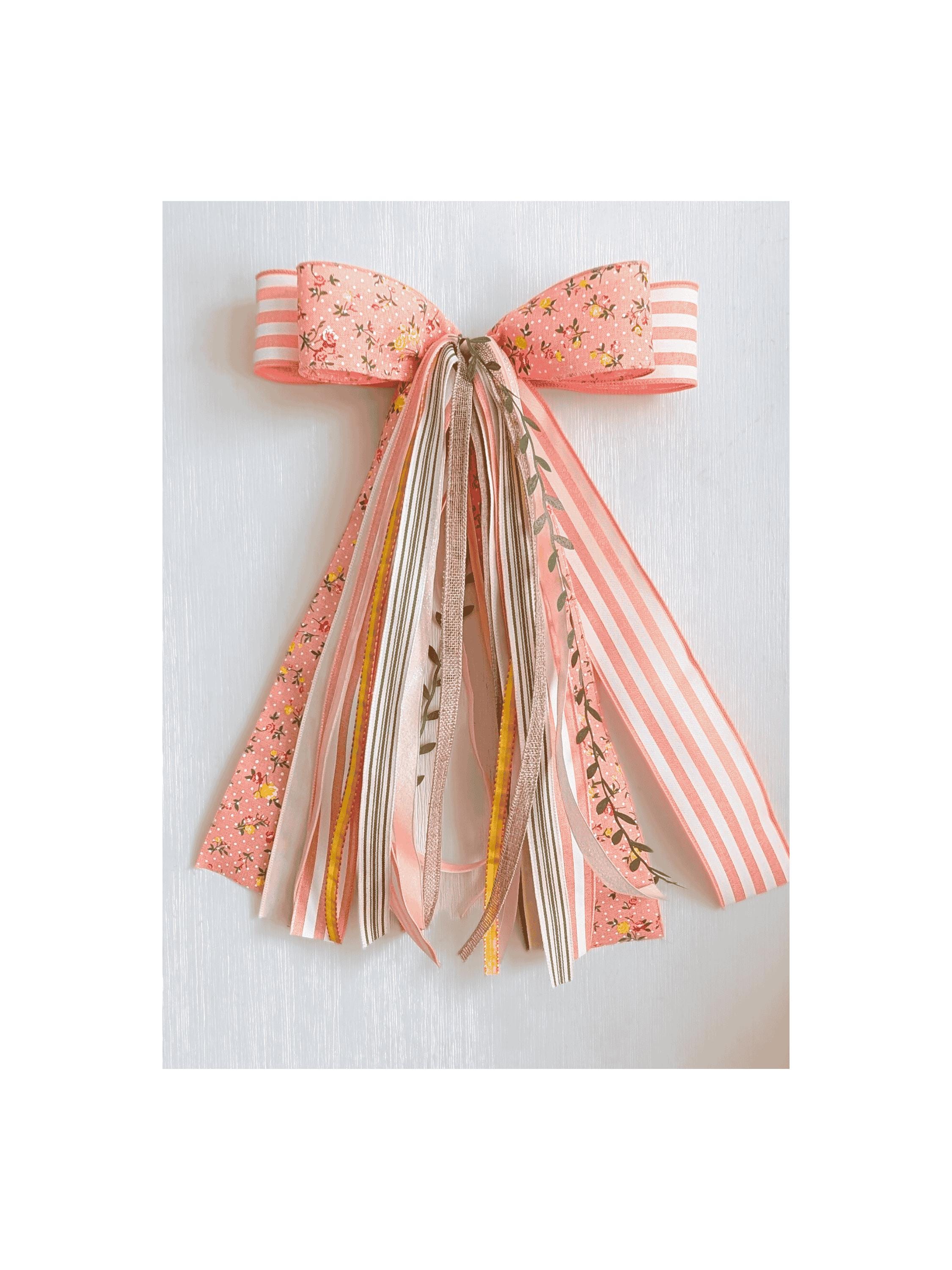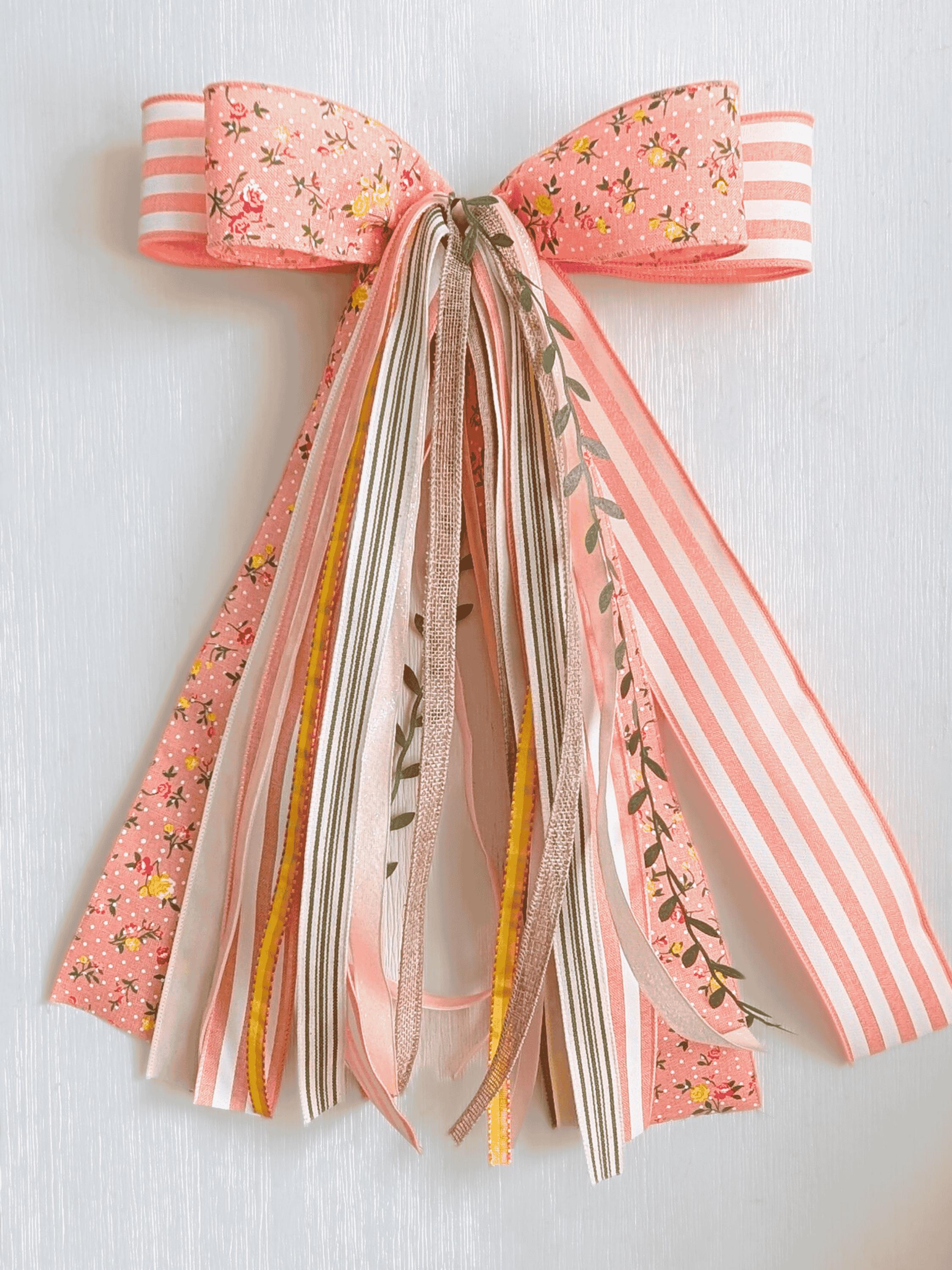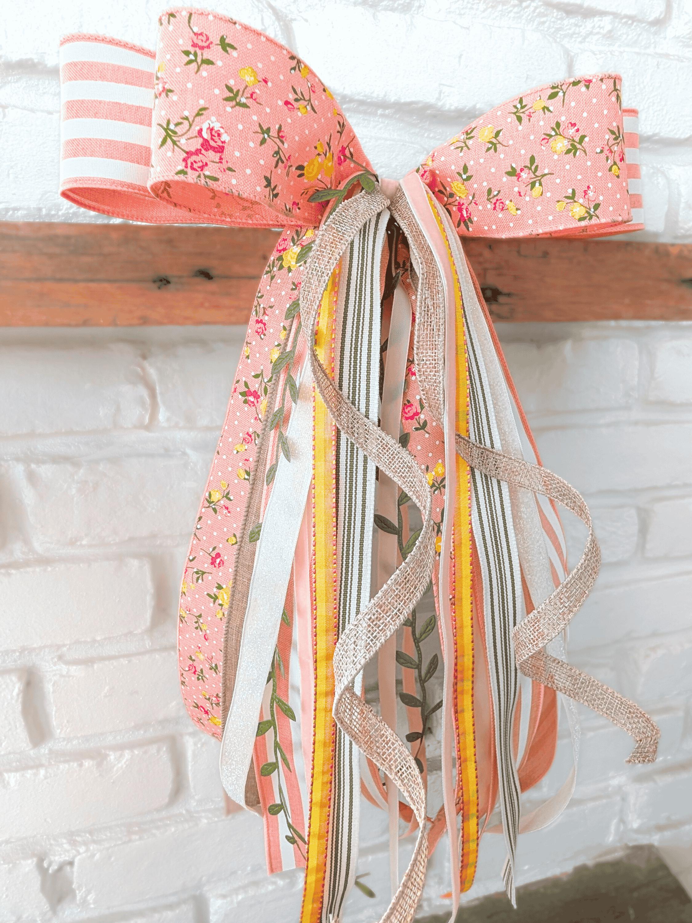 Chic and cheerful in Peach, Green, Yellow, White, and Neutrals, this trim and ribbon bundle bow ships securely in a storage box and fastens with a chenille pipecleaner.